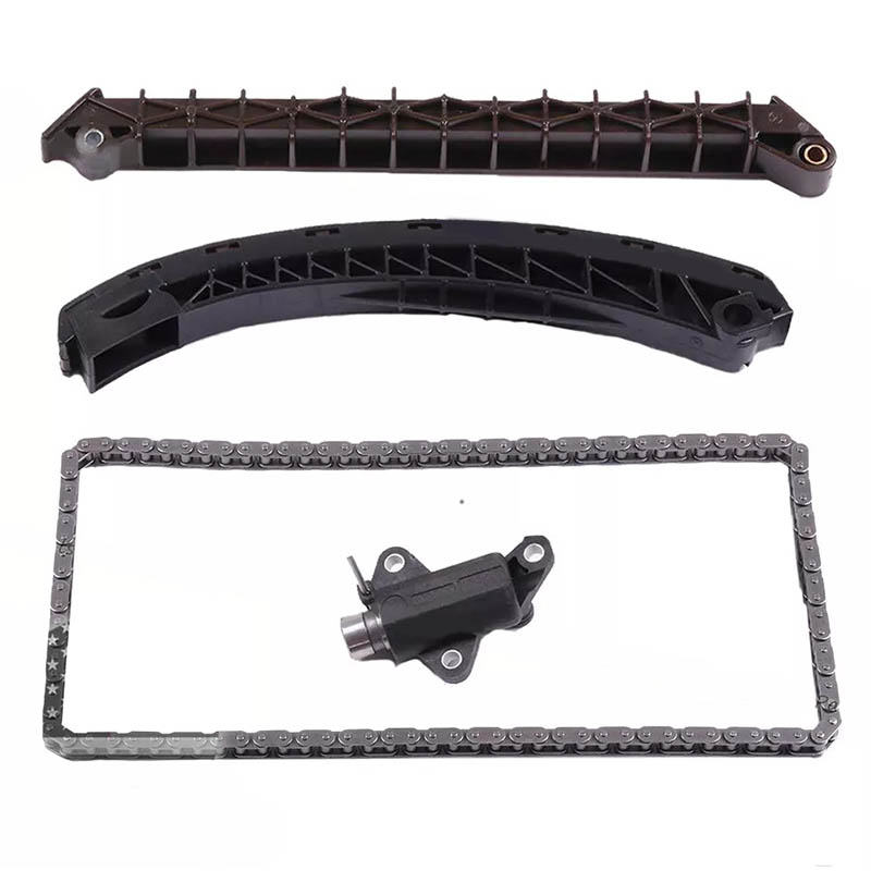 Комплект цепи ГРМ является важным компонентом автомобильных двигателей и в основном используется для привода клапанного механизма, гарантируя, что двигатель открывает и закрывает клапаны в нужное время для достижения нормальных процессов всасывания и выпуска. Он изготовлен из металла, имеет компактную и прочную конструкцию и практически не требует обслуживания в течение всего срока службы. Комплект цепи ГРМ обладает высокой нагрузочной способностью и эффективностью трансмиссии, что позволяет поддерживать точное соотношение фаз между валами и обеспечивать эффективную и стабильную работу двигателя. В то же время комплект цепи ГРМ менее подвержен загрязнению и коррозии, а также имеет более низкие затраты на техническое обслуживание.